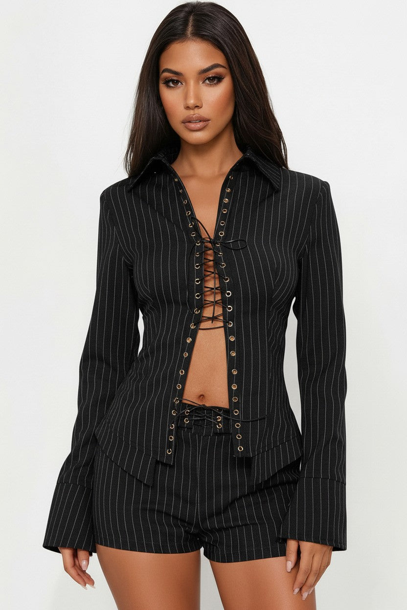 Striped Shirts And Shorts Set